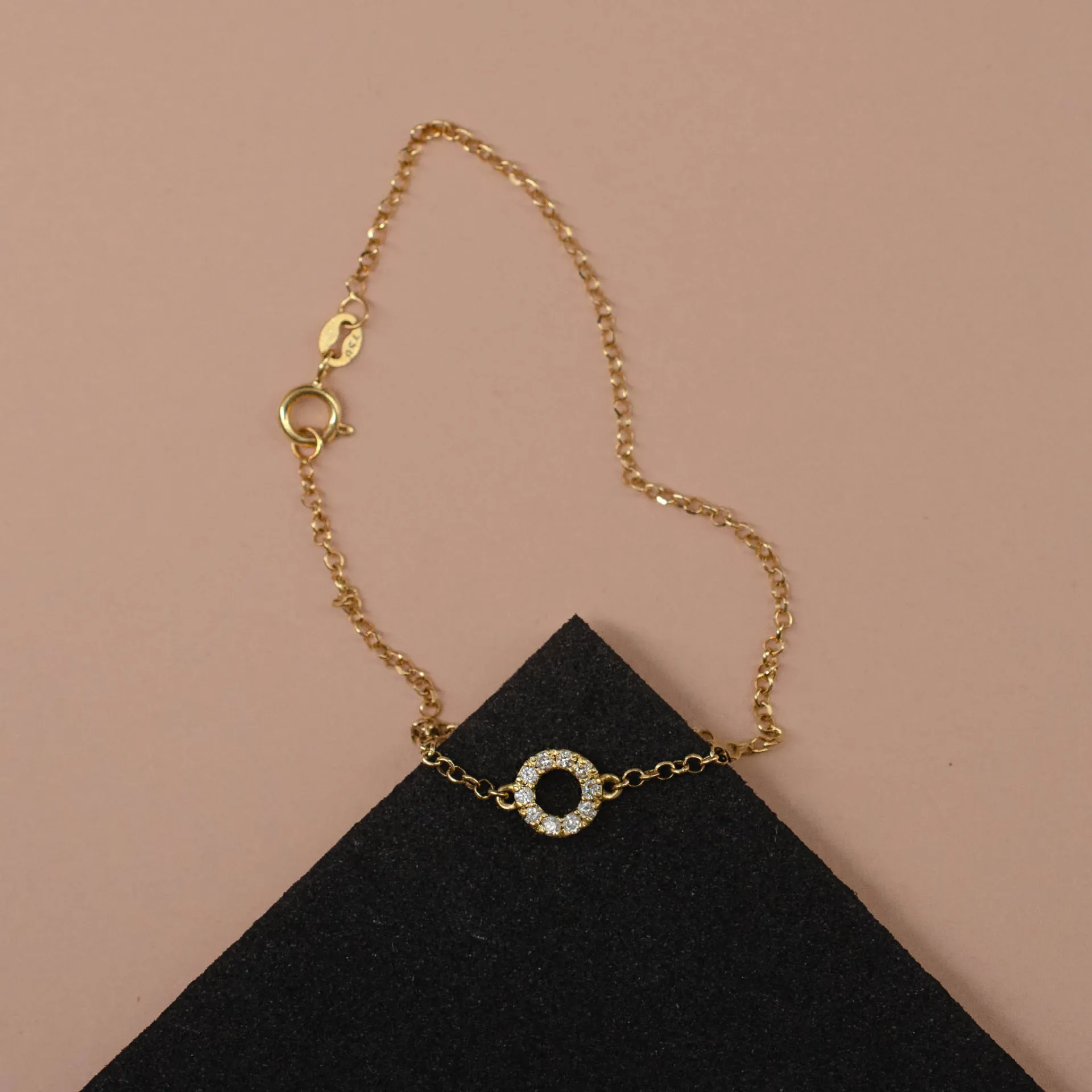 Essa delicada joia traz dez diamantes reunidos em aro, presas por dois elos a uma delicada corrente portuguesa, manifestando muita luminosidade e delicadeza!